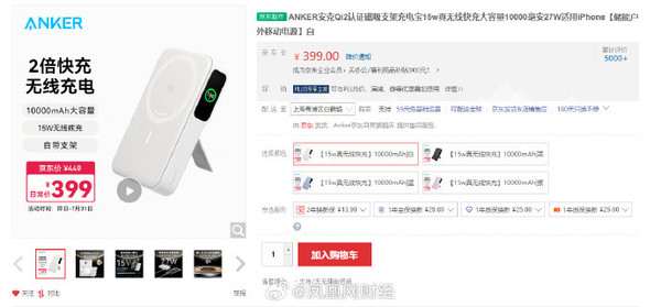 对此,有媒体查询购物网站发现,有一款名为“ANKER安克Qi2认证磁吸支架充电宝”的产品与特朗普使用的充电宝外形特点吻合。该商品型号为“A1654”,左侧有Type-C充电口,右侧上有LCD屏显,正在销售。