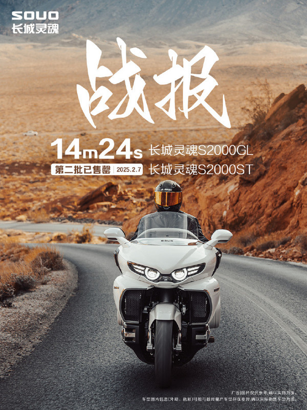 回顾去年11月1日,长城灵魂摩托车的首次预定同样取得了令人瞩目的成绩。三款车型——长城灵魂Founder创始人版、S2000GL和S2000ST,在开启首定后的短时间内便迅速售罄。其中,Founder创始人版备货88台,仅用4分33秒即售罄;S2000GL备货140台,5分05秒售罄;而S2000ST备货60台,也在15分34秒内被抢购一空。